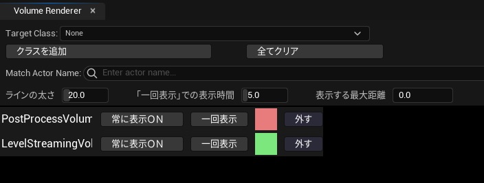 (Class=<Volumeのクラス名>,DisplayColor=<表示色設定>)