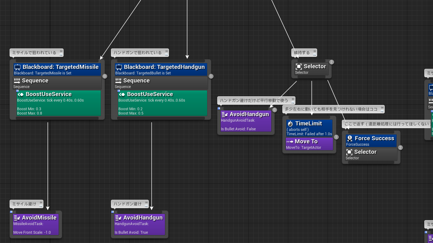 一番近い弾を避ける対象の弾としてBlackboardに保存